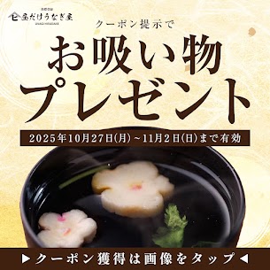 いつも『昼だけうなぎ屋 太田川駅前店』をご愛顧いただき誠にありがとうございます。 本日は公式LINE会員様に特別な期間限定クーポンをお届けいたします