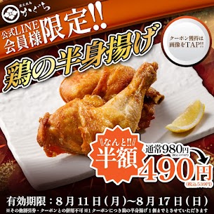 飲食事業 【炭火焼鳥 かぐら】鶏の半身揚げが半額に!! 2025.08.11 いつも「炭火焼鳥 かぐら」をご愛顧いただき誠にありがとうございます。 本日は公式LINE会員様の皆様だけにご利用いただけるのお得なクーポンをご紹介いたします 【公式LINE会員様限定クーポン】 ▶︎クーポン内容 鶏の半身揚げが半額!! ▶︎ご利用期間 2025年8月11日(月)〜8月17日(日)迄 ・利用規約 ※他割引券・クーポンとの併用不可 ※1クーポンにつき唐揚げ2個までとさせていただきます 大変お得なクーポンとなっておりますので是非、ご利用ください 東海市、太田川でデートや接待など様々なシーンでご利用できる個室のある居酒屋をお探しの際は東海市で居酒屋ランキング上位の人気店「炭火焼鳥かぐら」に是非お立ち寄りください! 皆様のご来店を心よりお待ちしております。 ■店舗概要 炭火焼鳥かぐら 電話番号:0562-57-2066 店舗住所:愛知県東海市大田町下浜田92-1ストリームビル2F 営業時間:16時00~24時00 店休日 :月曜日 公式LINE:https://page.line.me/544tjwak ■本社概要 株式会社HKホールディングス 代表取締役:沓名 英樹 電話番号 :052-228-9223 住所 :愛知県名古屋市中区栄2丁目9-5東海ビル7階 営業時間 :10時00~19時00(土・日・祝を除く) Tweet Share Hatena Pocket RSS feedly Pin it 【焼肉くつな 金山本店 】グランドメニューリニューア... 【肉のよいち】コースメニューをご紹介!宴会ならよいち...